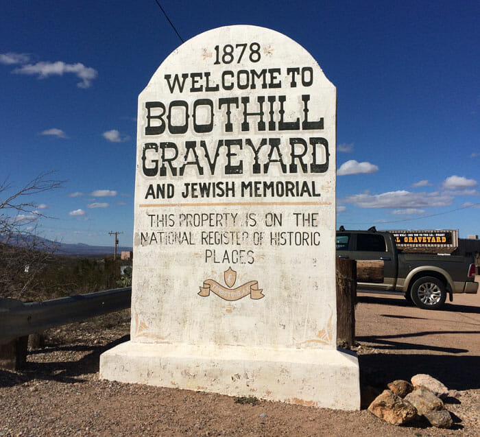 Boot Hill was established in 1878 according to this monument and was closed just six years later in 1884 because it was full; one hundred seventy four are identified in a brochure guide–admittance is $3.   It was a segregated cemetery with different quarters for the normally deceased, bad hombres, Chinese (Row 10) and Jews.  It took Judge C. Lawrence Huerta, a full blooded Yaqui Indian to get the Jewish quarter recognized after 100 years of disrepair–in 1983.