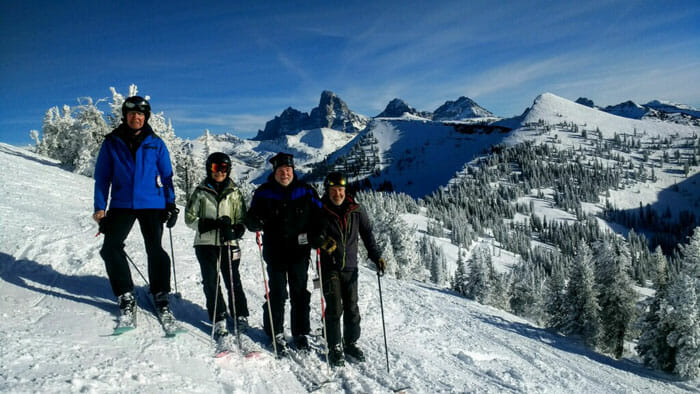 Of course, I must get a ski run in–it’s only been 10 years. With good friends at Targhee Ski Resort–a 45 minute drive from Jackson and worth the effort. Powder here is exquisite. The Tetons have a reversed profile from the west.