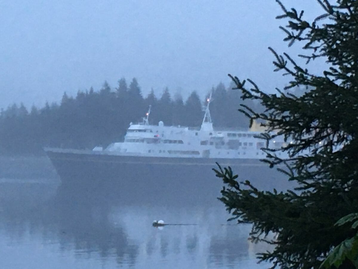 Another two weeks or rain–this is the first ferry to appear since last year–the Matanuska. We’re down to two big boats now. This upcoming winter’s schedule is for one boat every two weeks–our tax dollars at work……