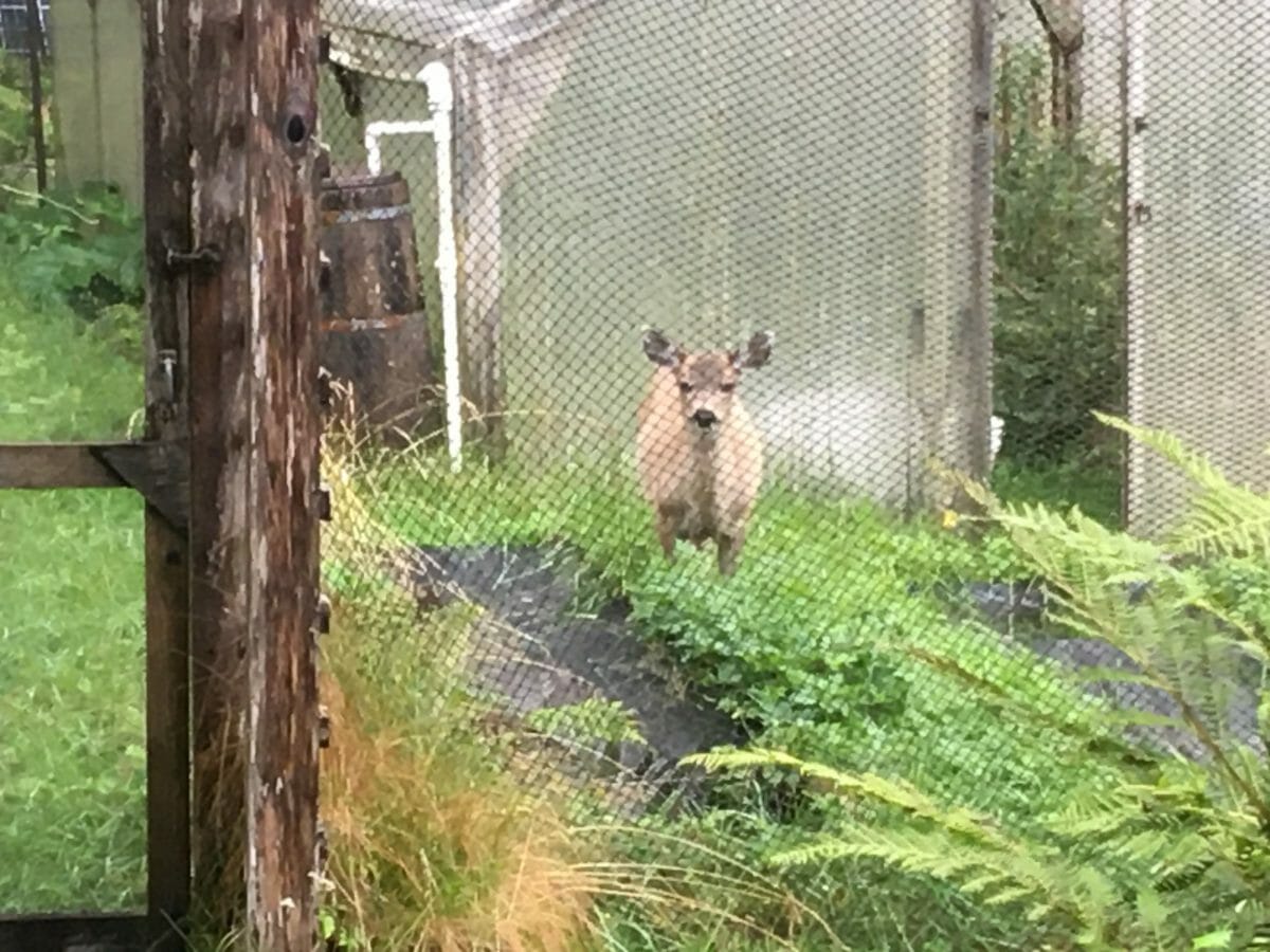 This is backwards–the deer have figured a way into my garden and I’ve left the greenhouse door open because of one sunny day’s heat. Well, this deer knows that he/she shouldn’t be there. Hmmm.
