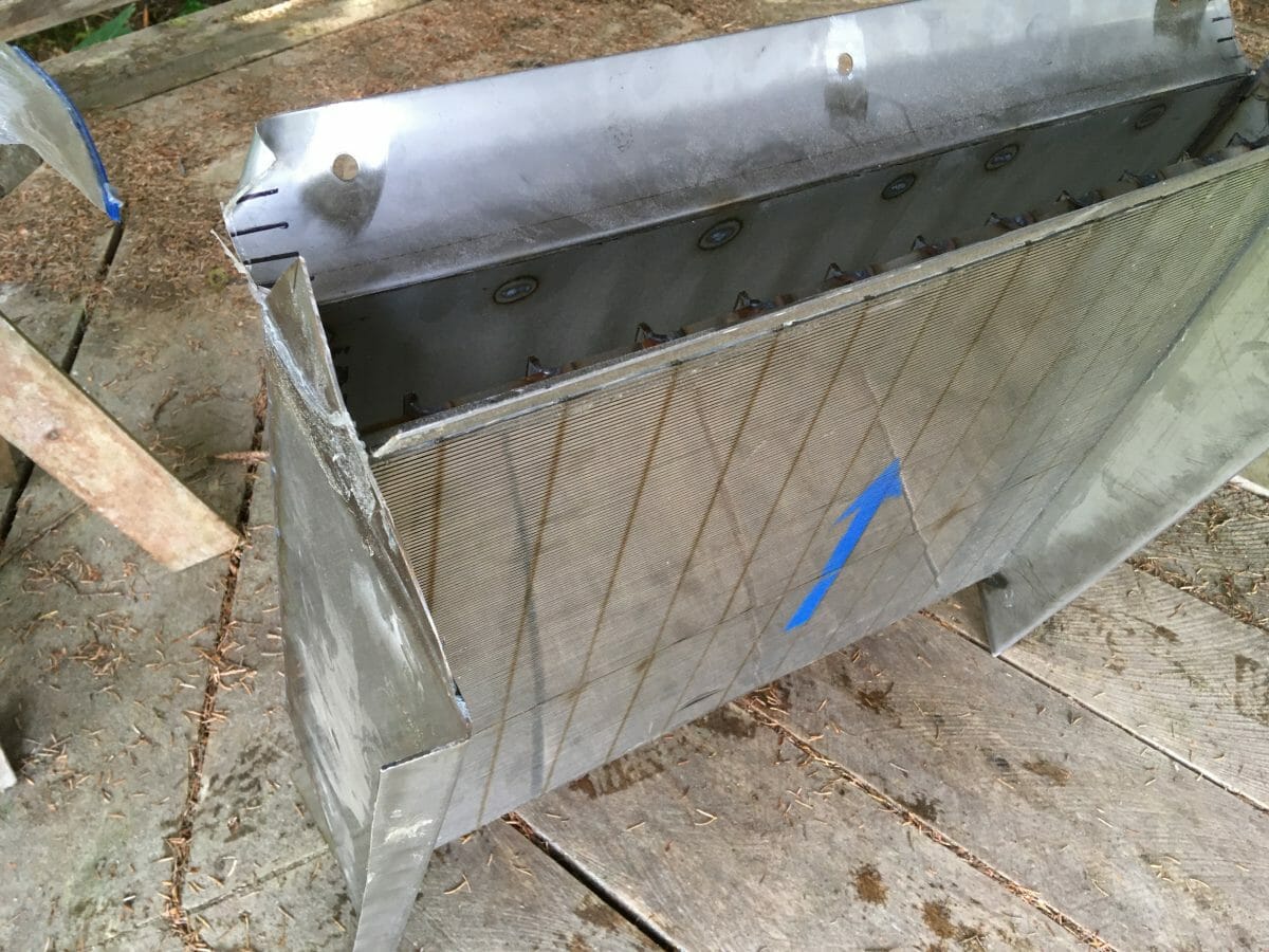 My big project this summer is installing the micro-hydro that I’ve spent 11 years applying for. I finally received permission. Above is a “wedge-wire” screen stream intake which cost only $1400! And the Post Office tried their best to destroy it. I’ve two intakes above the fork of the stream so another 36″ wide screen is coming.