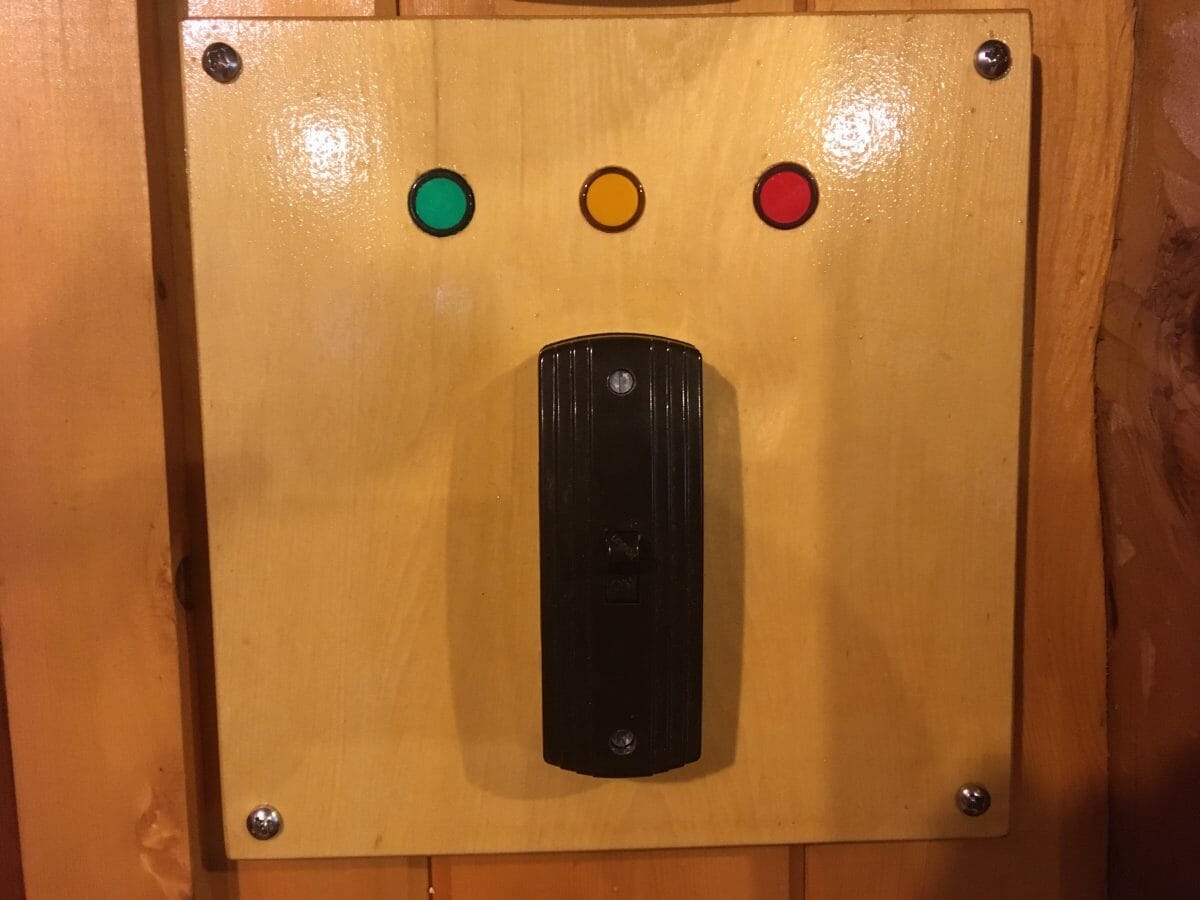 This switch and lightboard replaces the old Xantrex dashboard in my house here at the Kupreanof Yacht Club.  All the detailed information is now on my computer…..  On the wall in my house there are three lights–like a stoplight:  green, yellow and red.  These tell me what is running 150′ away in the well-house where all the energy meets.  Green = Generator is running; Yellow = Batteries are full and the  excess energy is being dumped into my Tulikivi; and Red = is the “emergency brake” adding resistance to the turbine–in essence, the main Tulikivi heater has failed and the MidNite Clipper has stepped in.  All these details are also on my computer and my iPhone in a slick graphic: