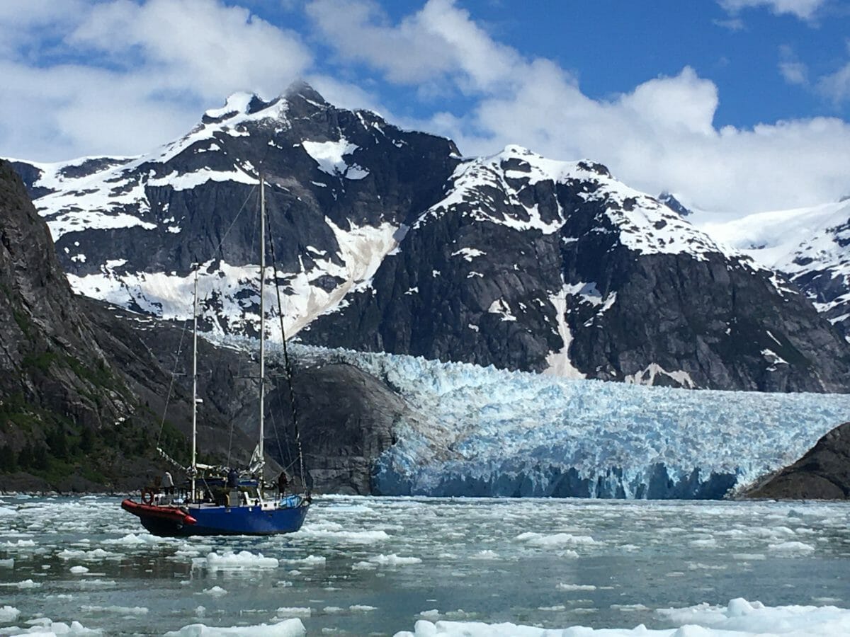 Like the Norwegians 100 years before, I collect ice on a sight-seeing trip to LeConte Glacier for the essential ingredient for the cocktail hour.  A sailboat has the same inclination.  This ice is old and very blue–the grounded glacier is 600′ below sea level–and makes perfect cubes for the mythical South Kupreanof Yacht Club’s cocktail hour. My G&T recipe: