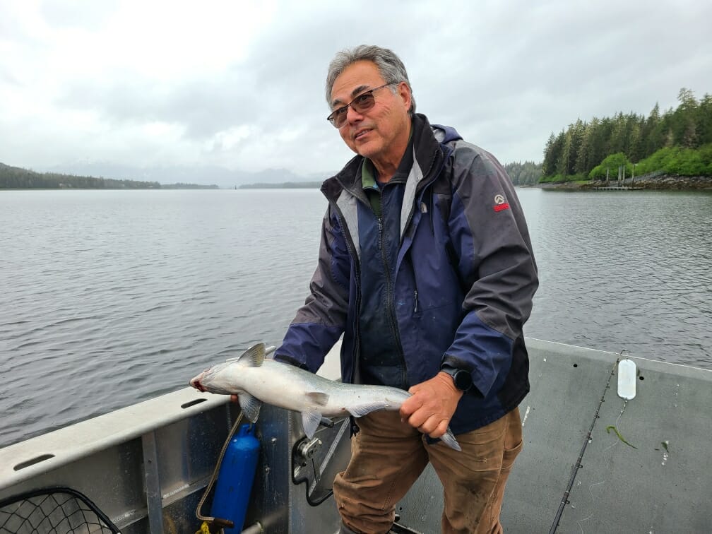 My first king salmon–but only 25″ with a 28″ minimum so back it went into the Narrows.  Except I later discovered that residents can keep two undersized Kings–oh, well.   And I should mention I paid $30 that day for an annual license simply because I couldn’t find my senior life-time permit and didn’t want to disappoint my guests.  So….for an extra $30, I tossed a keeper back into the Narrows!  One of my worst days of fishing.
