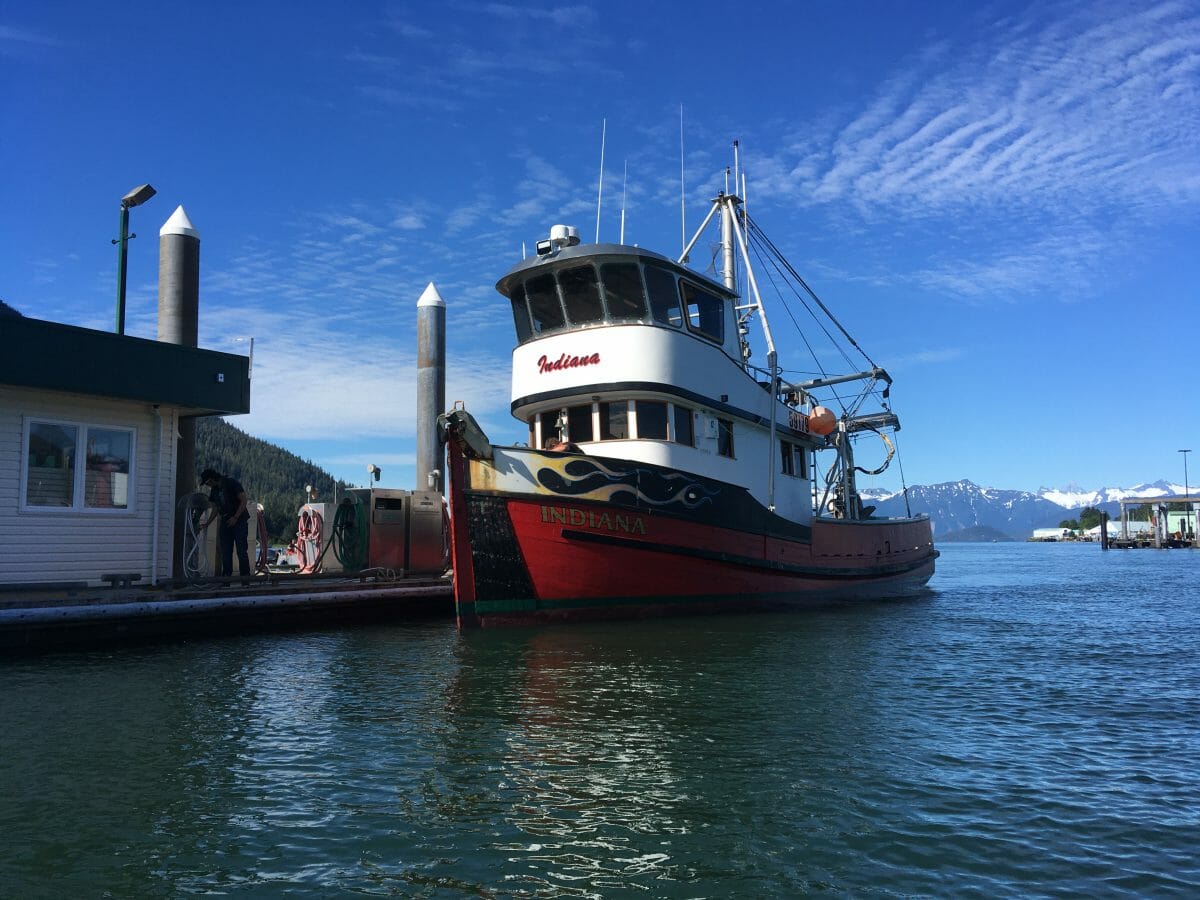Marty–an old college buddy–drives his seiner to Alaska for perhaps the 50th time.  We used to snag a fish out of the bilge of his fathers fishing boat moored on Lake Union in the mid-sixties when we roomed together at Wilburs’ Alpine Club.  Here, the Indiana sports a new top-house and complete refit.  One hardworking guy.
