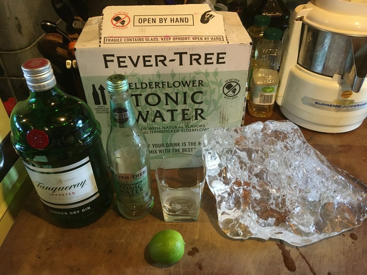 4.)  top up with Fever Tree Elderflower tonic water.  Plunge the ice cubes once to the bottom to mix and enjoy!