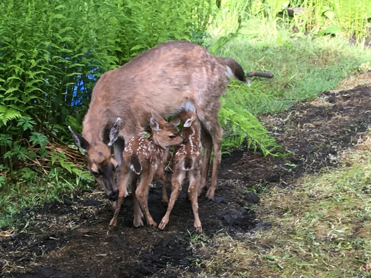 Twin fawns inspect my refilled trench.  They continually nosed about the fresh turned dirt.  Puzzling what they’re looking for.