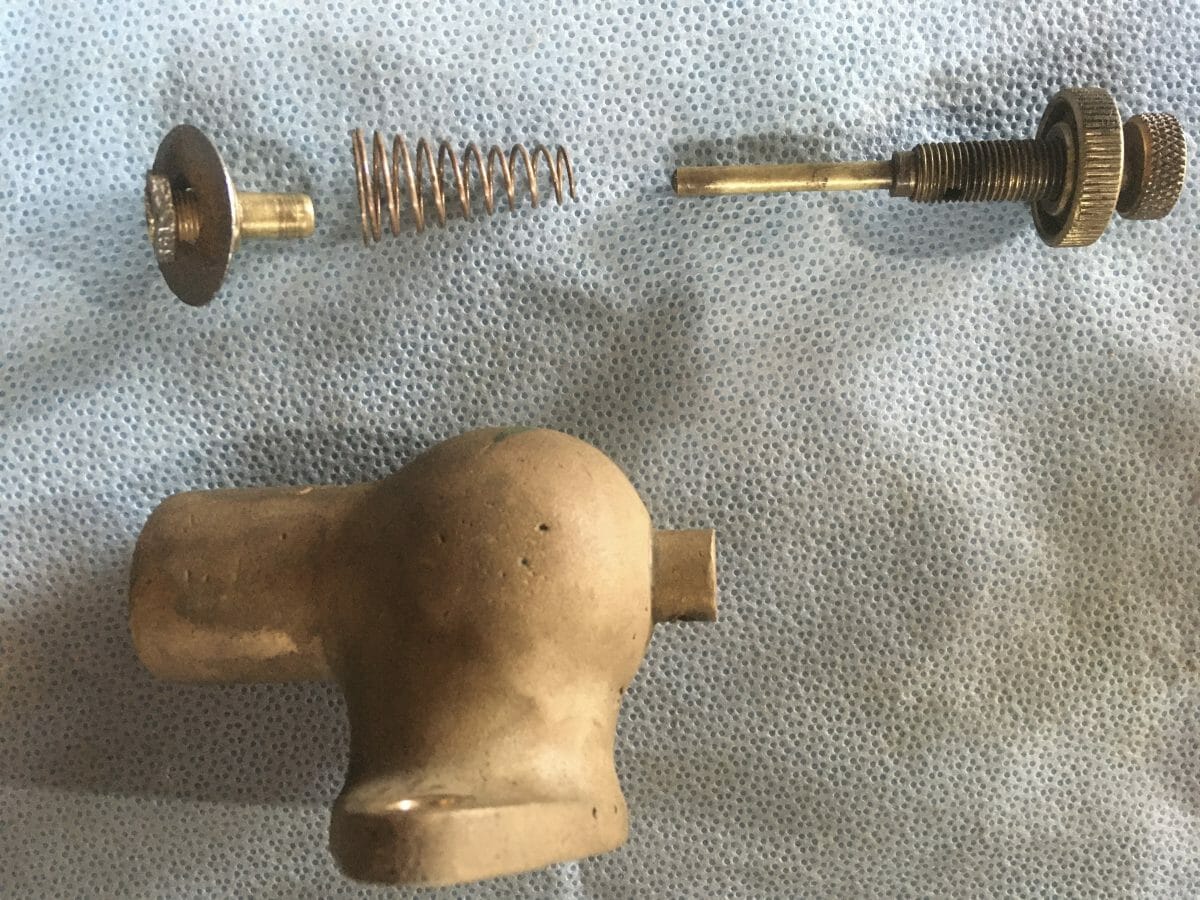 Meanwhile, in the mechanical room, it’s time to disassemble the carburetor. All new gaskets and threw in a few o-rings and bought on ebay some #4 X 36 brass screws–needing only one–to attach the carburetor float to the rocker arm. All set to be reassembled.
