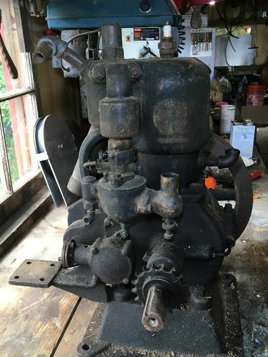 This is the engine I’ll put in the boat–to be named Leif. The engine is a Cushman with the 1911 patent, model C.