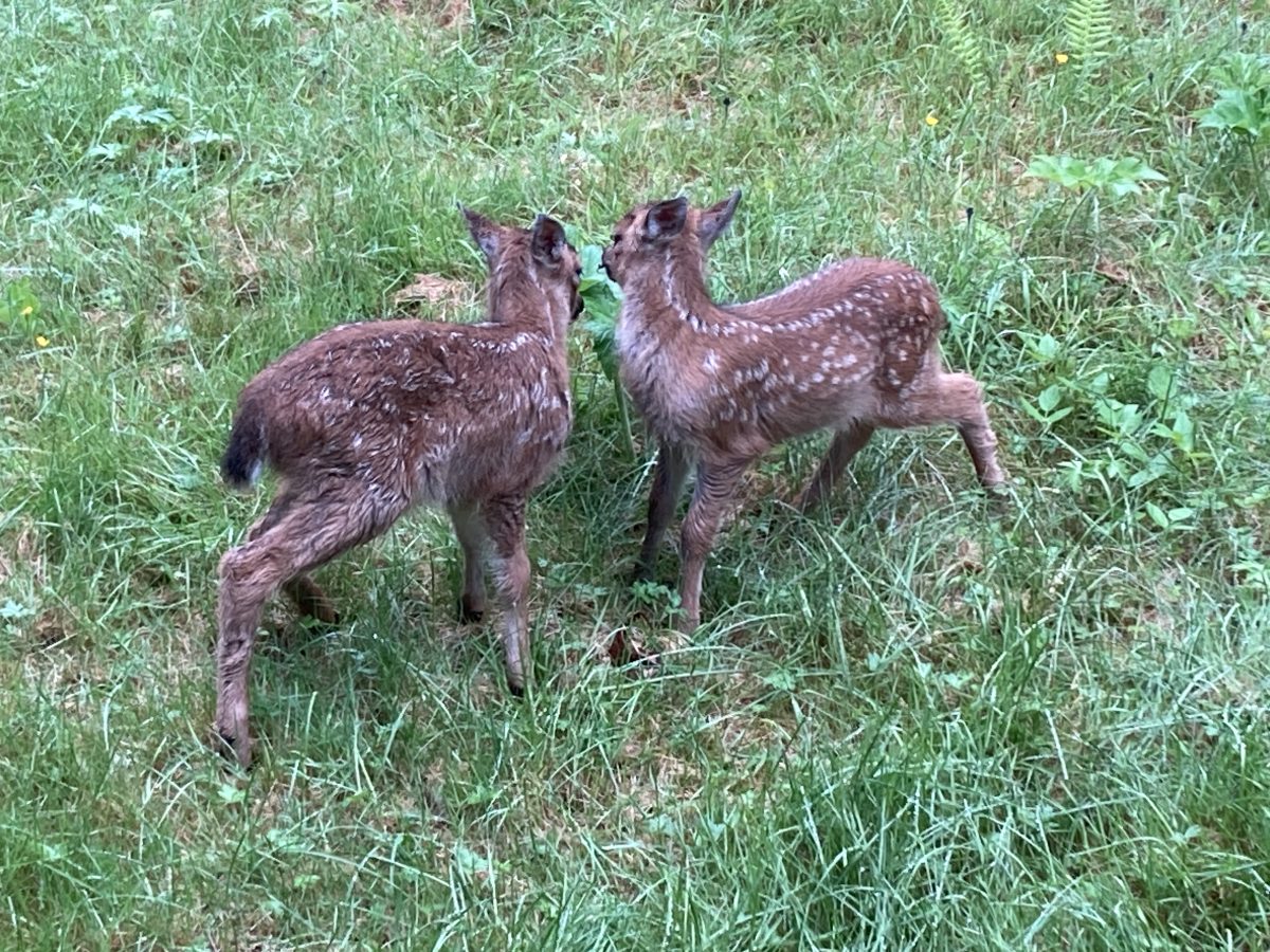 The Bambis show up in force this year–two sets of twins and a single. The bounce around like ping-pong balls–a great source of entertainment.