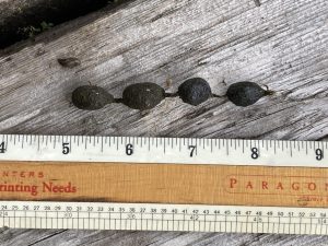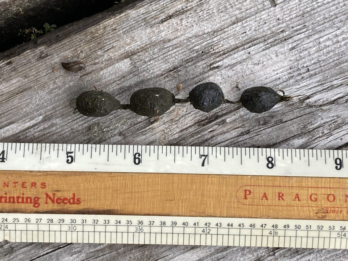 This caught my curiosity–a string of poop. Now what animal does this? I think a squirrel. Possibly a porcupine. The Peterson Field Guide of Animal Tracks by Adolph Murie is ambiguous here. Strictly coincidental, this cabin was built by Harry Merriam, who worked under Adolph at McKinley in 1955…..and I worked with Adolph 1970-72. Speaking of poop….