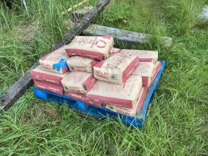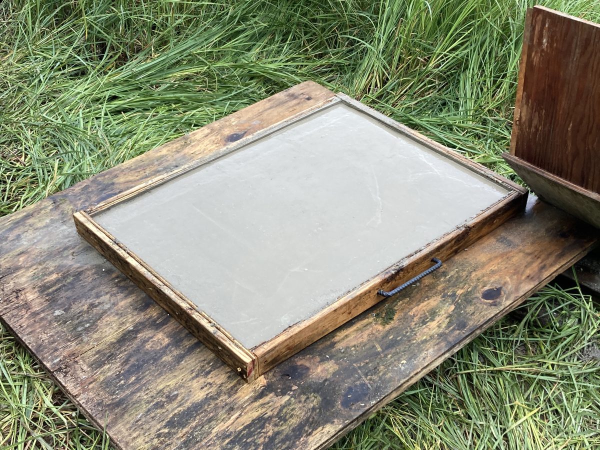 I calculated 20 bags of concrete mix and it took 25–I think I got short-sacked (like short-sheeting, but instead with concrete). I built a mixing box of very high calibre and hand mixed everything.