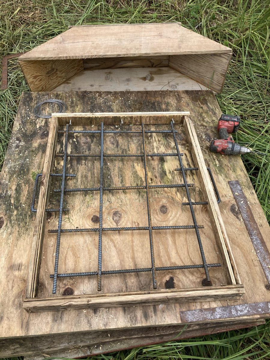 This is the lid–reinforced like the West Seattle Bridge–which has developed cracks throughout. Not this lid! OK–on to more cheerful topics. BTW–I lost about 10 lbs. working cement for a week. Good Alaska exercise.