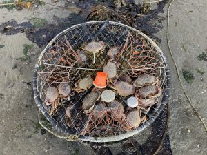 The commercial pots. I use a 24 oz. plastic container full of fish spines and sometimes throw in a halibut carcass for good measure. What are they using?