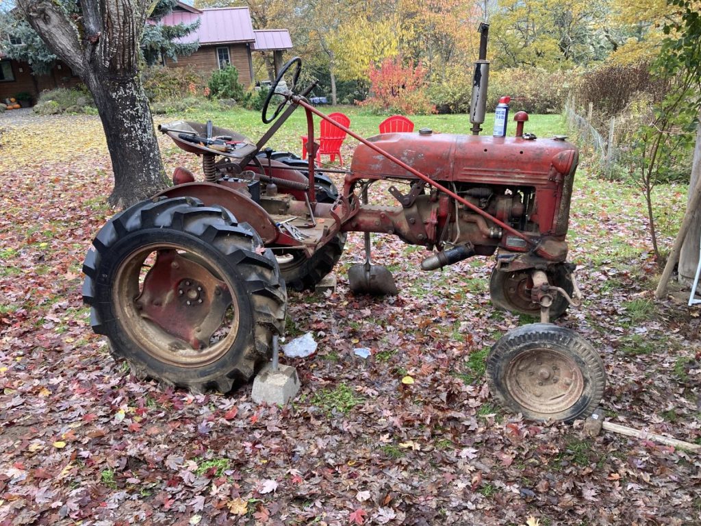 A 1948 Farmall Cub tractor. I learned to drive on one of these–when I was 14 and so did John. John’s grandfather and my dad were shipmates on the USS Escambia in WWII in the Solomon Islands. In the early 1960s, I worked at Weaver’s horse farm–four miles from my house near Juanita Beach and would ride my one-speed bicycle twice a day to transfer 20′ irrigation pipes–10 pipes which had to be unlocked and moved down two sections of the feeder pipe. I got 50 cents for each visit–or a dollar a day–good money then. I also had two paper routes. On weekends, I got to shovel out horse stalls (fun!) and would accompany the Weaver family on horse shows around the Pacific NW. Part of my skill set then included driving a Farmall Cub. But my childhood work history is another topic–so maintaining my reputation for staying on the subject, I’ll leave this for later post.