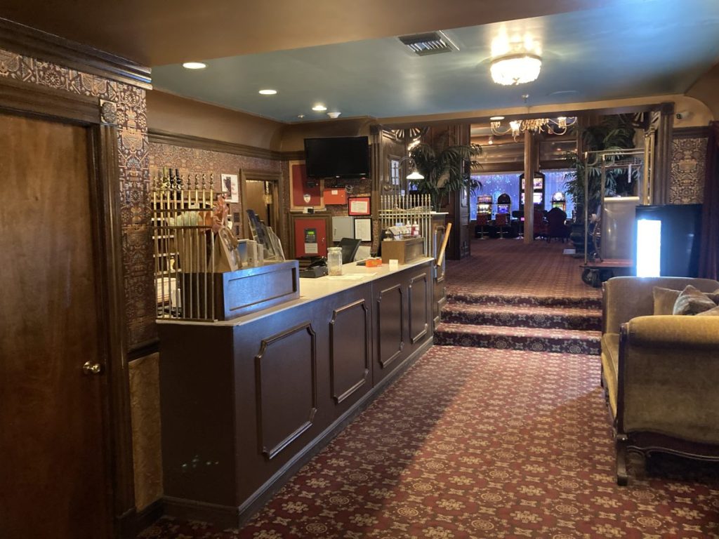 Here’s the lobby–the bar is called the Wyatt Earp bar (where he purportedly worked) and the dining room is named after Jack Dempsey, who was a bouncer in Earp’s bar and promoted fights–neither of which is true. They serve a beautiful steak, though. All the waitresses call you “hon.” The hotel sports a huge vault which presumably kept the pokes of silver miners and is now open as a small museum. I highly recommend this place. (Mizpah–it means two halves of a heart that couple together into a locket.) It was built beginning in 1907 for $200,000 and stood the highest building in Nevada back then. Besides Wyatt Earp and Jack Dempsey, Howard Hughes was rumored to have married Jean Peters there. It’s also haunted…..by the “Lady in Red.”