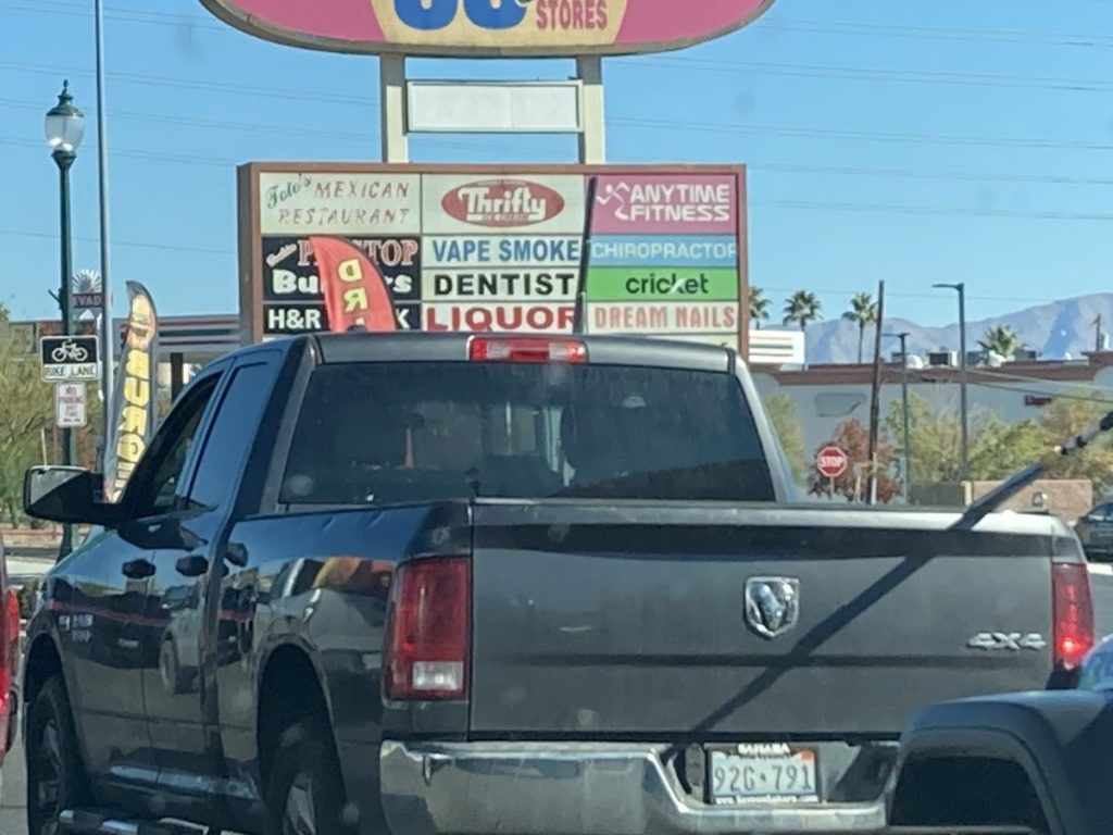 Now, I mentioned Boulder City–this sign caught my eye–I’m glad I didn’t practice dentistry here–between the vape shop and a liquor store. This place doesn’t compare with Goldfield or the Mizpah Hotel. Keep driving south, Doug.