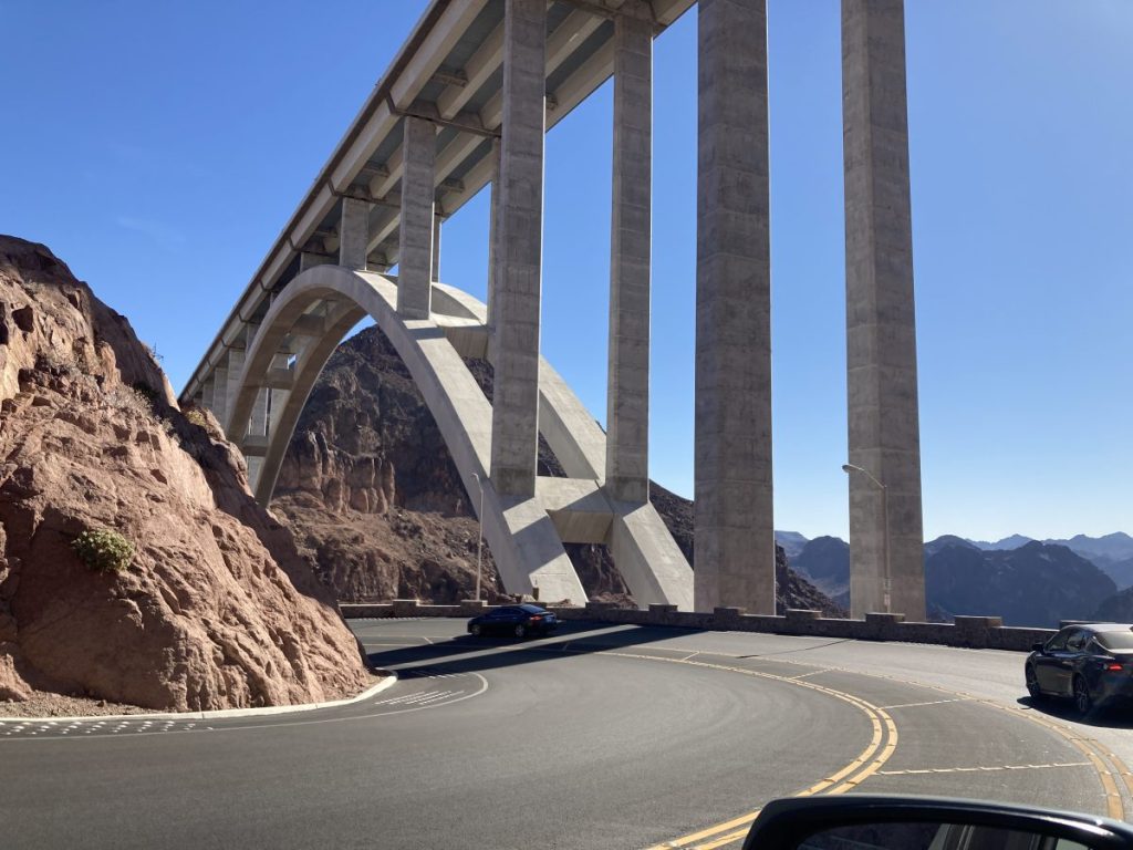 You’ll all recognize this place–Boulder Dam, renamed Hoover Dam by Herbert hisself. This bridge bypass is a monster of engineering. I recommend taking the slow road through Boulder City nearby and then crossing the dam. The main route used to transit the dam crest but it’s now a dead-end.