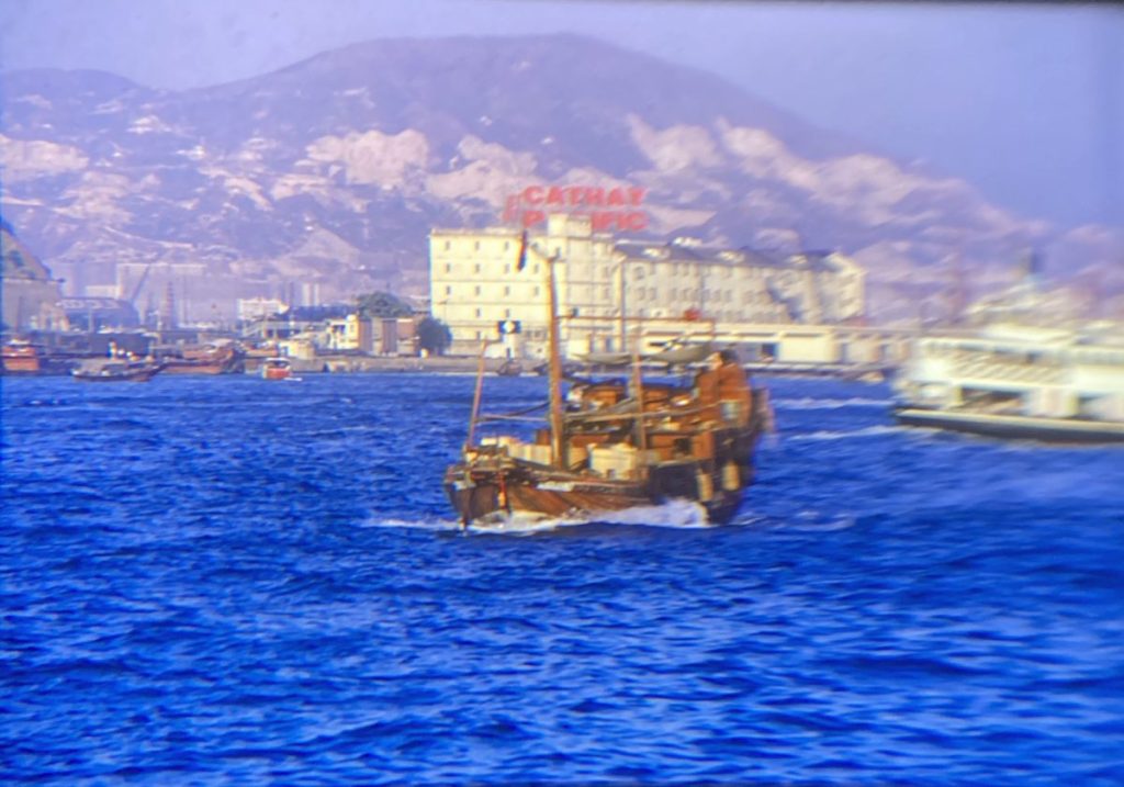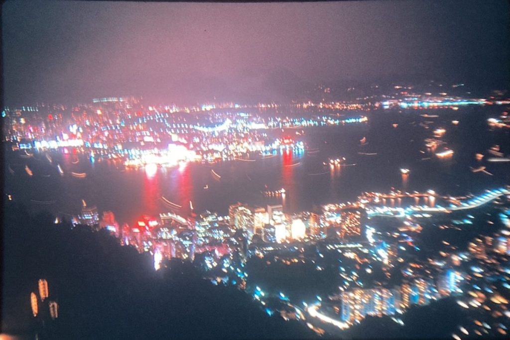 This was Hong Kong in 1966–no sky scrapers. Kowloon is on the left in the distance.