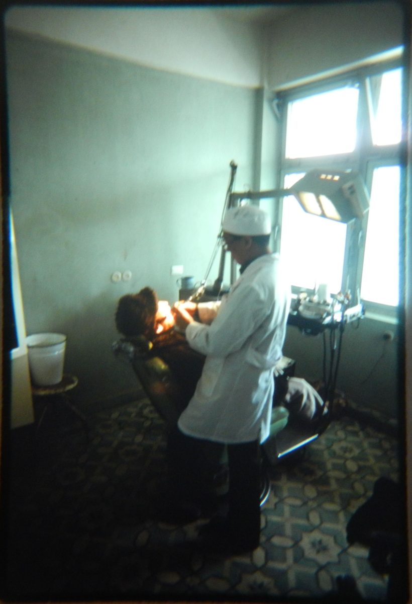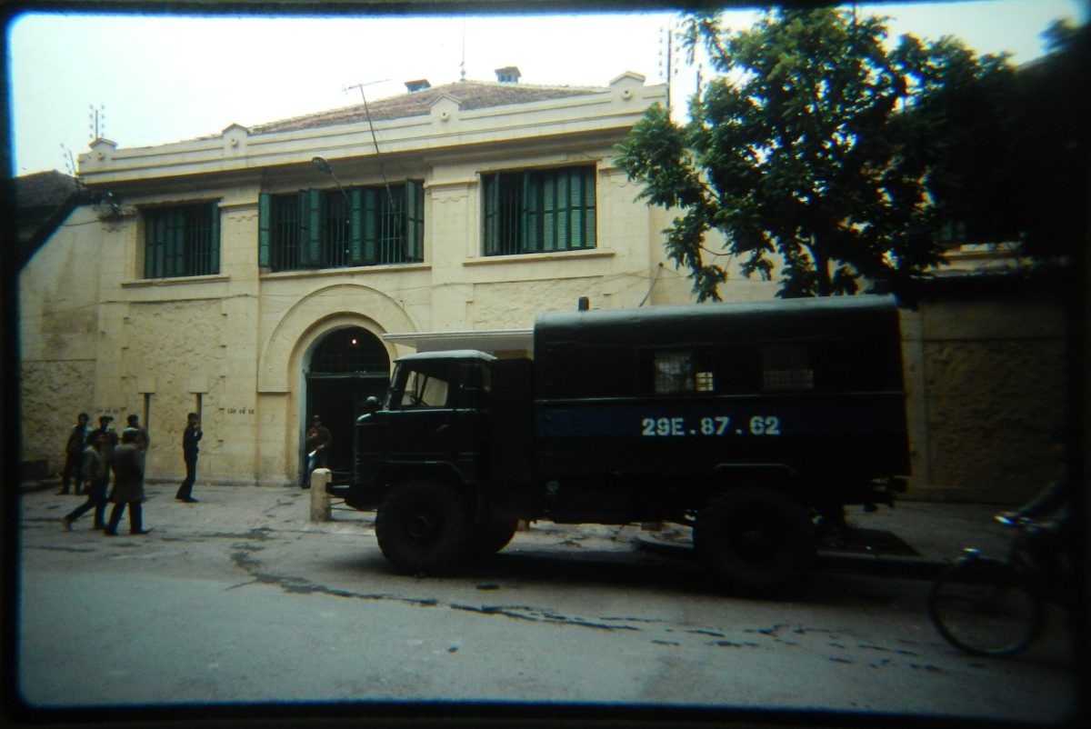 As an additional favor, Bui Tung set up a meeting with his old colleagues at Hospital 108 and introduced me to his brother, Bui Dai, who was the head administrator of the hospital.  He brought the head dentist, Nha Si Pham Van Mui (Nha Se is Dentist).  Here–the dental clinic–1920s Czech equipment.  Dr. Mui was Ho Chi Minh’s dentist.  We scrambled for a common language none of us guests spoke French and none of them, English but we broke through this language barrier when I asked Dr. Mui where he studied dentistry. He replied; “Leningrad.”  I immediately switched to Russian and off we went–with an invitation for Mui to be my guest back in Seattle at the annual American Dental Association Convention.  Immediately Dr. Dai agreed with the clap of his hands.  Amazing!  And we waged over 10 years of war with these gracious people.  They arranged a short tour around Hanoi–including the “Hilton” and a B-52 which crashed into one of the lakes in the city center.  Here is the “Hilton” then a prison.
