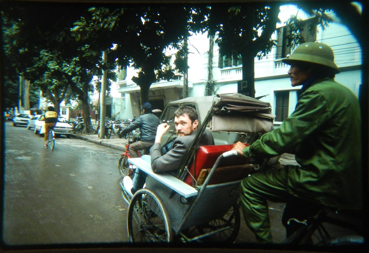 Hanoi in 1989 was still a back-water recovering from the “American” war.  The population of Vietnam in the late 1980 was now nearly 78M people and the average age was only 17–there was virtually no memory of the war in the population.  I teamed up with an Ephrata WA potato farmer, Len Nichols, and we flew into Bangkok as an “advance party” after detouring all around the Pacific–6 days before our departure, G. W. Bush decided on the worst foreign policy faux pas in American history (after Vietnam) and invaded Iraq.  Bangkok has a significant Muslim population and sitting in an ex-pat bar, drinking beer and eating cashews, we watched US bombs again dropping on dubious foreign targets.  Outside, a few bombs went off in protest–shear lunacy.  Here I am 25 years later sitting in Bangkok–where I took my first R&R–awaiting to fly in the reverse direction, into Hanoi where it was relatively safe.  Oh, the irony of it all.   Len was an amputee also and stored a motorcycle in Hanoi.  He and I would ride about–him with his prothesis sticking straight out like Joseph Goebbels!  We first went over to the Australian Embassy and they gave us pointers to navigate around Hanoi.  We all went out for dinner that first night and I’ll never forget the food–Crab Farci (a French dish of twice baked crab) and Beethoven!  Two young Vietnamese girls dressed in the traditional ao dai came in–one with a violin–and played a Beethoven violin sonata.  Two giant woks glowed on purple and orange charcoal below staring down through the central mezzanine–a Nat Geo moment.