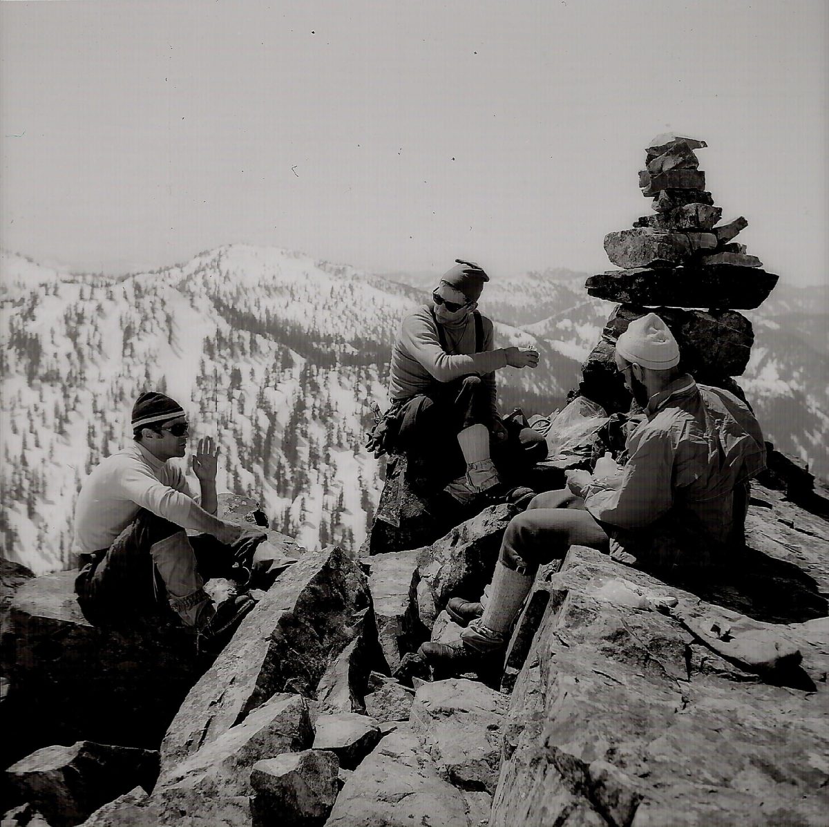This is perhaps my most memorable climb–an easy winter ascent of The Tooth, near Snoqualmie Pass.  I had met Tom Hornbein in 1963 directly after he returned from Mt. Everest–he traversed the West Ridge with Willie Unsoeld, descending the South Col in what is still today, the greatest mountaineering feat of all time.  I would hitch rides with him to Mt. Rainier where I was working on the Camp Schurman summit hut.  Tom’s in the center here.  Ted Wilson (left)–whom I met at UW was a guide for John Harlin at Leysin Switzerland (see this post for more).  Ted was three term mayor of Salt Lake City and was a wonderful life-long friend.  He skippered my 73′ 125 year old tug up to Alaska…..and back!   On the right is Dick Emerson, also of the 1963 Everest Expedition.  I was in good company!  All are gone now–so enjoy your friendships while you can!
