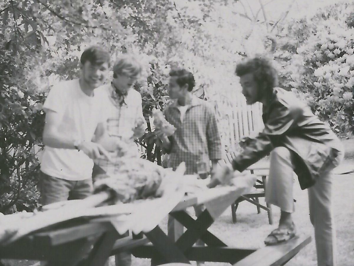 Here’s a little glimpse of college life in the 1960s:  Wilburs was on 20th NE two blocks from the “U”–the tower in the distance was the campus boundary.  My VW is on the left.  Life began to get normal and it got even better with dorm parties and something completely missing in Vietnam–girls.  Like most college students, we had our parties.  Marty McCallum, a Wilbur’s resident liked to throw parties–here we roast a sheep, Arabic style after removing the back yard fence (inviting the neighbors, of course).  I think about 600 people eventually showed up–I forget exactly.  Marty and I are left in the left photo with some of Marty’s Arab friends.  Marty still fishes in Alaska and stops by my house here in Alaska en-route through the Wrangell Narrows.